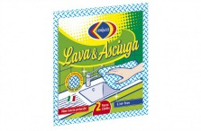 Panno multiuso dotato di speciali rilievi sgrassanti per rimuovere lo sporco dalle stoviglie e da tutte le superfici lavabili.
